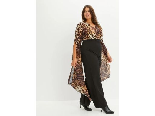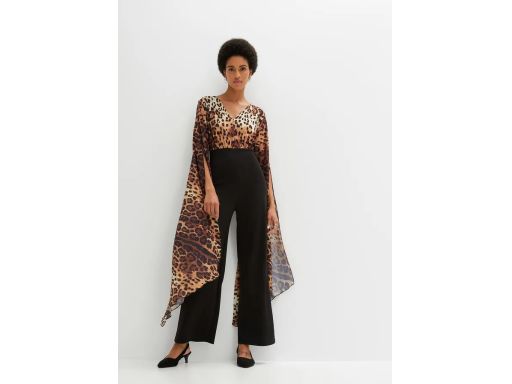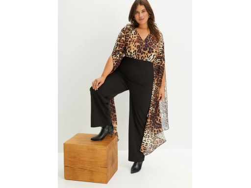 B.P.C kombinezon czarny z elementem leo asymetryczne zwiewne rękawy ^36/38