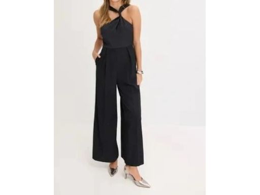 B.P.C kombinezon czarny z szerokimi nogawkami i z satynową górą 38.