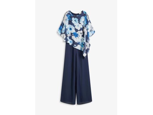 B.P.C kombinezon granatowy z asymetryczną narzutką we wzory 42.