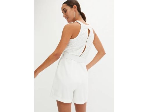 B.P.C kombinezon śmietankowy z koronką i z szortami 36/38.