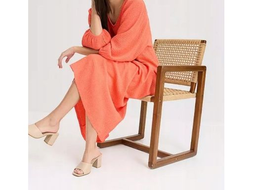 B.P.C koralowa sukienka długa z krepy r.40/42