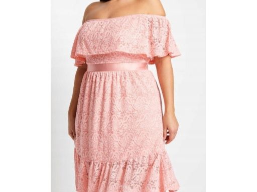 B.P.C koronkowa sukienka carmen odkryte ramiona różowa ^40