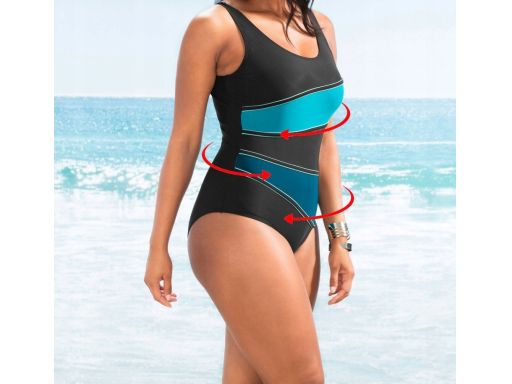 B.P.C kostium jednoczęściowy czarno-turkusowy 46.