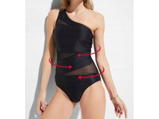 B.P.C kostium kąpielowy asymetryczny czarny na jedno ramię z siateczką 44.