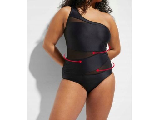 B.P.C kostium kąpielowy asymetryczny czarny na jedno ramię z siateczką 44.