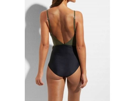 B.P.C kostium kąpielowy czarno-khaki z falbanką i wycięciem r.40