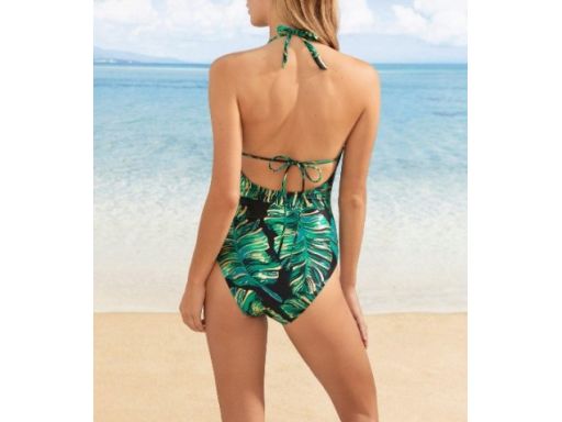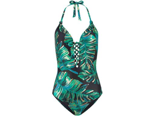 B.P.C kostium kąpielowy czarny w zielono-złote liście r.40