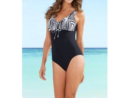 B.P.C kostium kąpielowy czarny z białym wzorem na biuście r.48