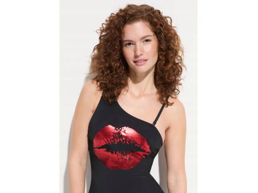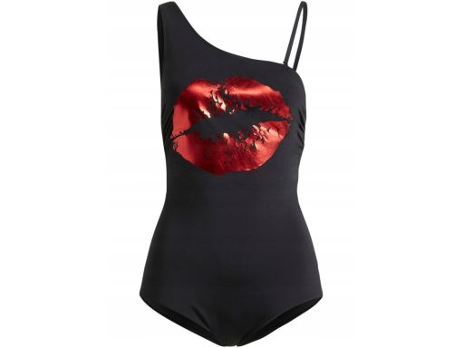 B.P.C kostium kąpielowy czarny z nadrukiem na jedno ramię czerwone ust