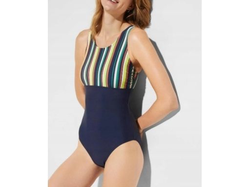 B.P.C Kostium kąpielowy granatowy z kolorowymi paskami r.40