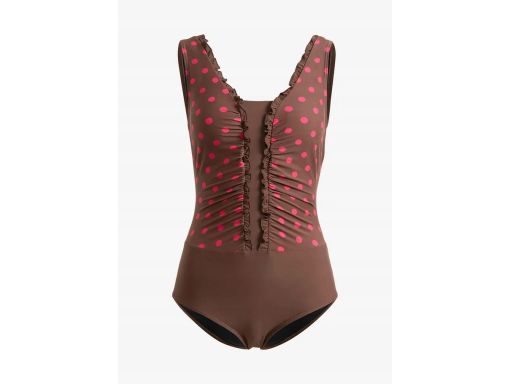 B.P.C Kostium kąpielowy modelujący brązowy w różowe grochy ^40