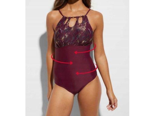 B.P.C kostium kąpielowy modelujący śliwkowy z nadrukiem złotym 38.