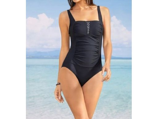 B.P.C kostium kąpielowy shape czarny z marszczeniem i dżetami 44.