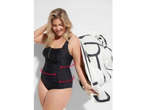 B.P.C kostium kąpielowy shape czarny z marszczeniem i dżetami 46.