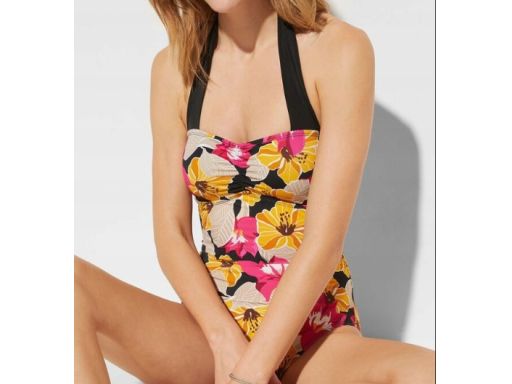B.P.C kostium kąpielowy wiązane ramiączka kolorowe kwiaty 44.