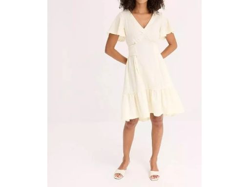 B.P.C kremowa sukienka z falbankami z krepy r.44/46