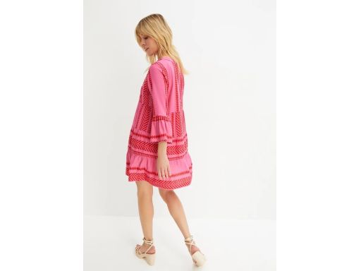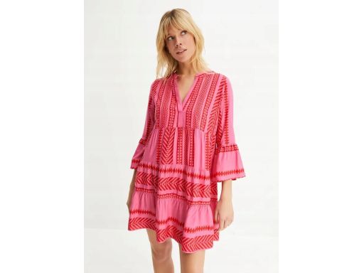B.P.C krótka sukienka czerwono-różowa we wzory z wiskozy r.36
