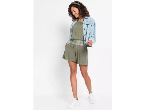 B.P.C krótki kombinezon khaki z szerokim pasem z białym haftem 34.