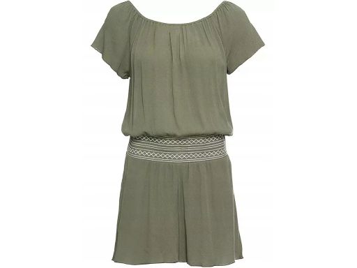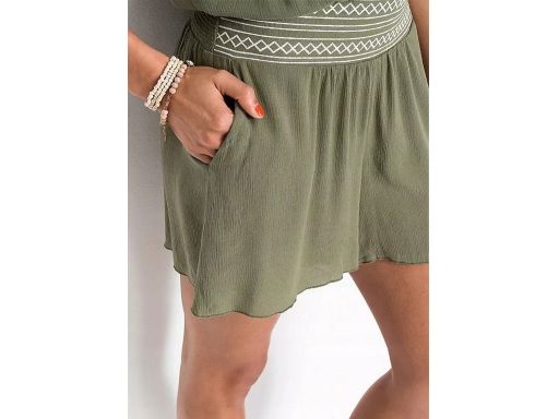 B.P.C krótki kombinezon zielony z szerokim pasem z białym haftem r.44