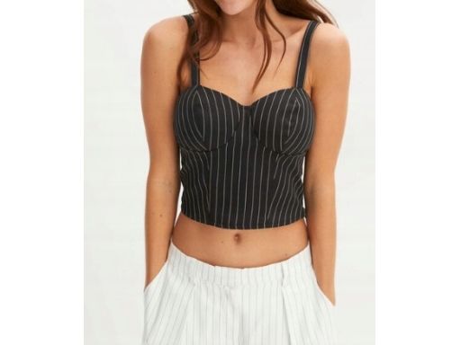 B.P.C krótki top gorsetowy czarny w cienkie paseczki ^34