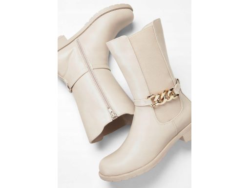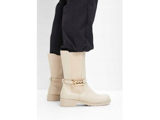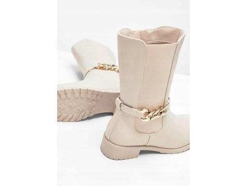 B.P.C krótkie kozaki beżowe ze złotym łańcuchem 41.