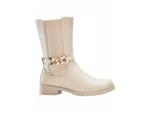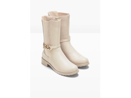 B.P.C krótkie kozaki beżowe ze złotym łańcuchem r.42