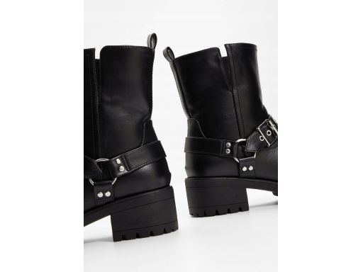 B.P.C krótkie kozaki biker czarne na grubej podeszwie i klocku 39.