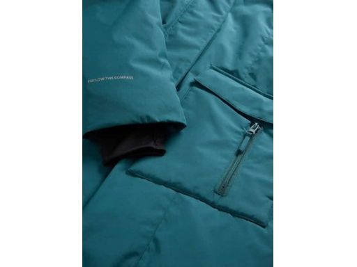 - 66% poliester, 34% poliester (recykling),Podszewka: 100% poliester, podszewka rękawów: 100% poliester, wypełnienie: 80% puch (z recyklingu), 20% pierze