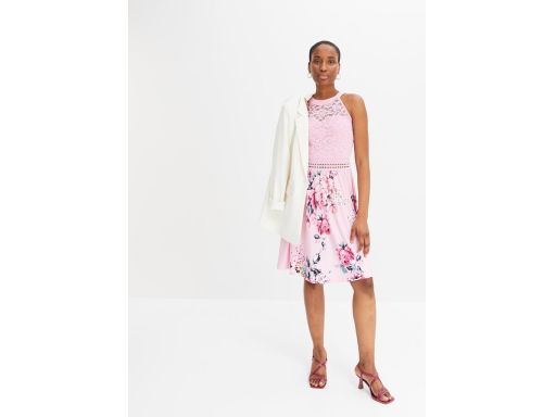 B.P.C letnia sukienka kolorowa różowa z koronką i ażurowym paskiem 40.