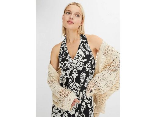 B.P.C letnia sukienka midi czarna z nadrukiem ecru ^42