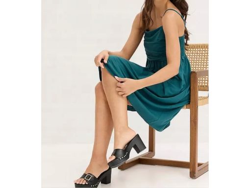 B.P.C letnia sukienka na ramiączka morska z marszczeniem 40/42.