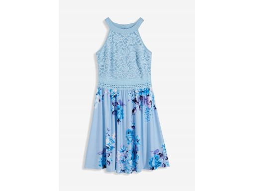 B.P.C letnia sukienka niebieska w kwiaty z koronką i ażurowym paskiem ^46