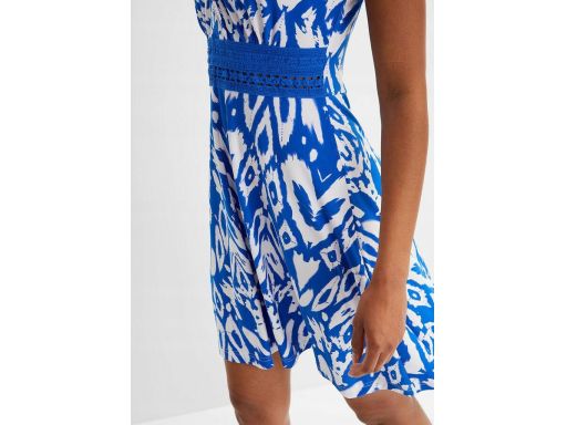 B.P.C letnia sukienka z nadrukiem i ażurowym paskiem niebieska 36/38.