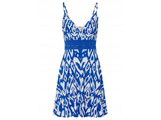 B.P.C letnia sukienka z nadrukiem i ażurowym paskiem niebieska 44/46.