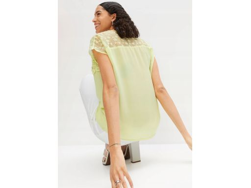 B.P.C limonkowa bluzka z haftem i koronką 50.