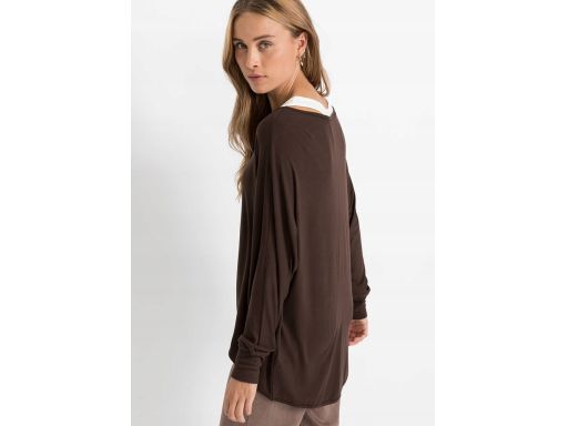 - wierzchnia bluzka luźna brązowa z delikatnie dłuższym tyłem