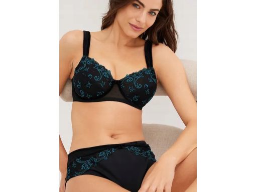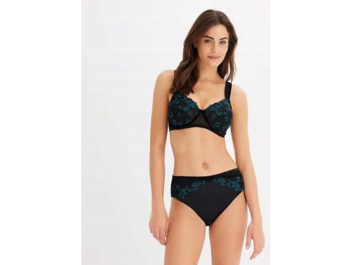 B.P.C majtki figi maxi czarne z turkusowym haftem 40/42.