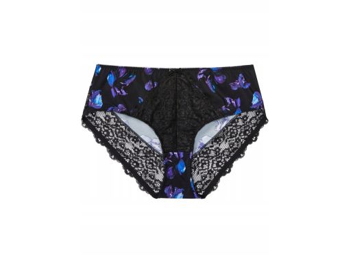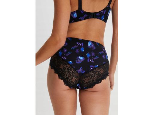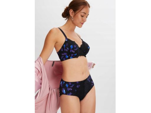 B.P.C. majtki figi maxi z koronką czarne nadruk turkusowe kwiaty r.36/