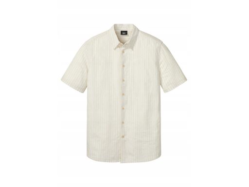 B.P.C męska koszula lniana biało-beżowa w paseczki ^49/50