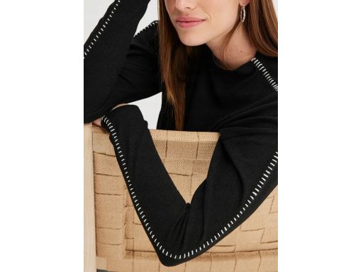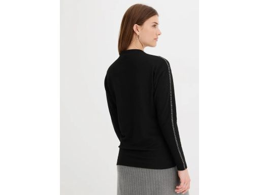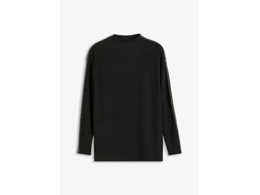 B.P.C miękka bluzka z długim rękawem czarna biały haft na rękawach r.4