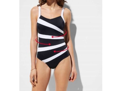 B.P.C modelujący stylowy kostium kąpielowy czarny w białe paski r.44