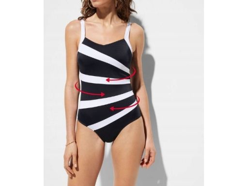 B.P.C modelujący stylowy kostium kąpielowy czarny w białe paski r.46