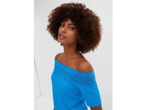 B.P.C niebieska bluzka carmen z koronką ^36/38