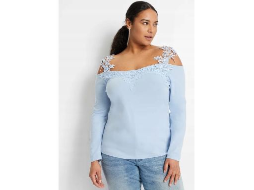 B.P.C niebieska bluzka z odkrytymi ramionami i koronką 40/42.