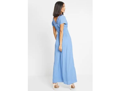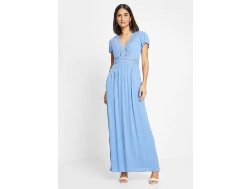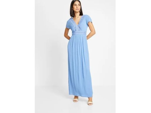 B.P.C niebieska sukienka z wiskozy z koronką długa r.40