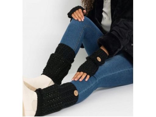 B.P.C ocieplacze dzianinowe ażurowe stalowe z guzikiem 4 elementy komplet.