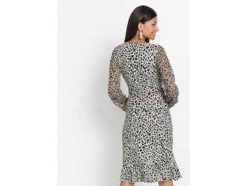 B.P.C ołówkowa sukienka z falbankami w cętki asymetryczna ^36/38