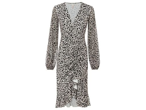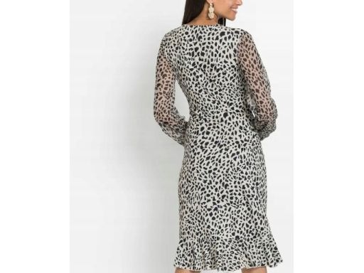 B.P.C ołówkowa sukienka z falbankami w cętki asymetryczna r.36/38