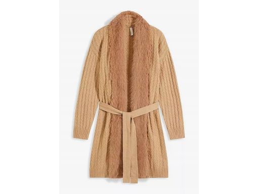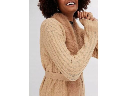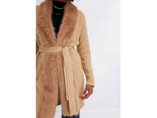 B.P.C płaszcz dzianinowy karmelowy z futerkiem ^44/46