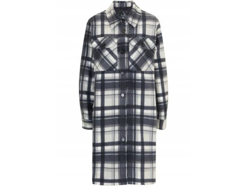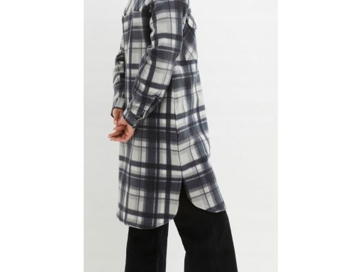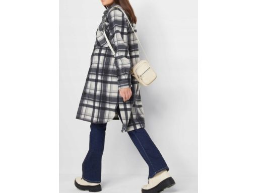 B.P.C płaszcz flauszowy w kratę szary długi koszulowy ^48